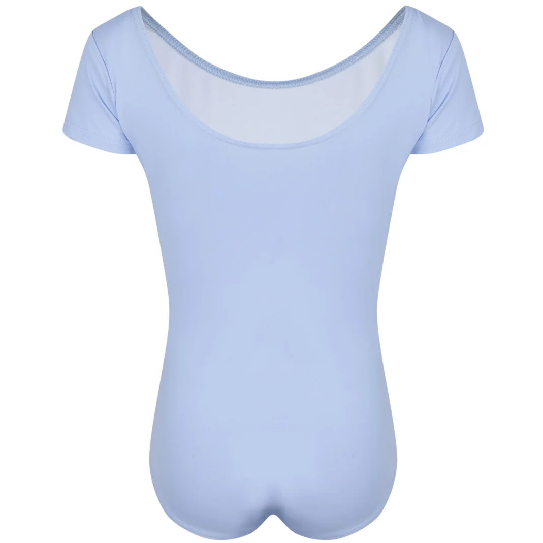Fully lined, capped sleeve leotard with matching colour coordinated belt from size 2 upwards.